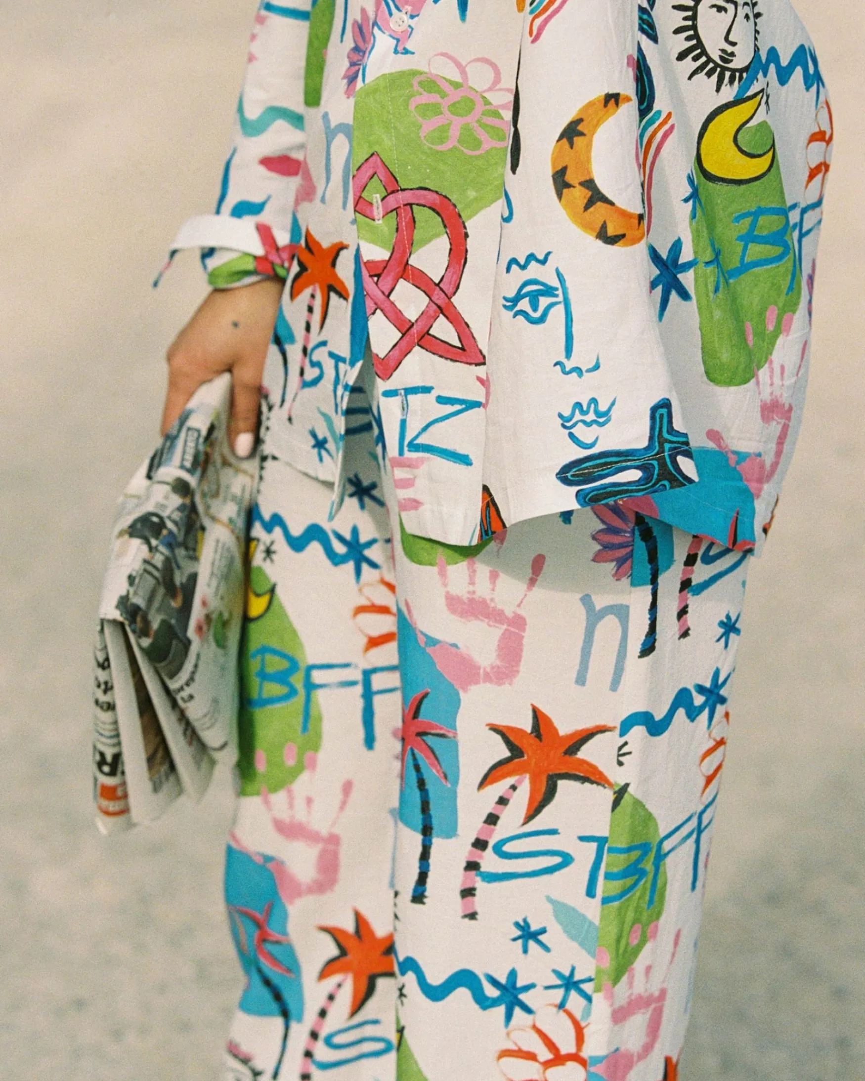 Een key item uit de Stieglitz x Elise Boers collectie; de Friends Palazzo broek. Perfect met de bijpassende Friends Oversized Blouse of mix-and-match met oversized of cropped tops. Deze palazzo broek bieden comfort en stijl voor een moeiteloze zomer garderobe.