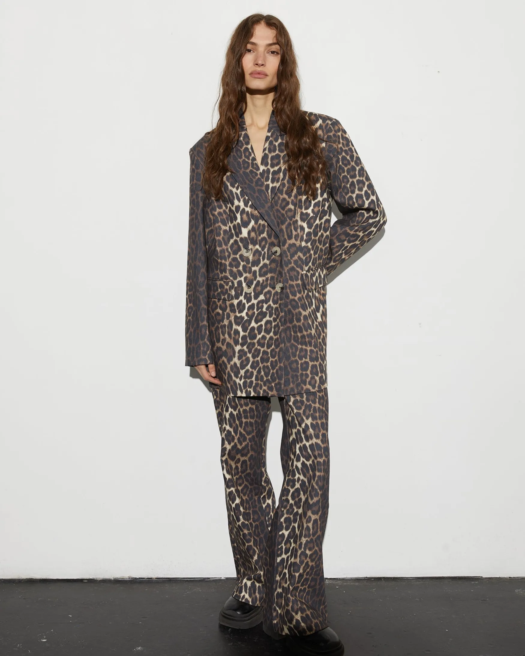 Maak een gedurfde indruk met de Sabrina Broek van Stieglitz. Deze broek, onderdeel van de Sabrina set, heeft een klassieke pantalon pasvorm en een opvallende luipaardprint. Perfect om je outfit een unieke uitstraling te geven. Print dessin plaating is bij elk item uniek.