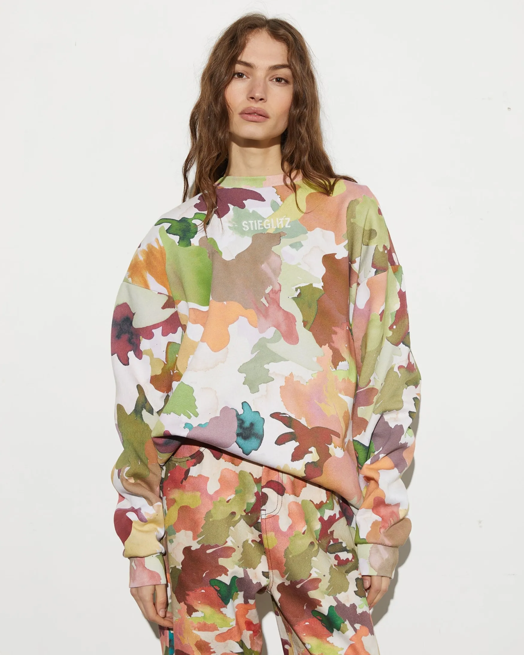 Blijf comfortabel en modieus met de Mila Sweater van Stieglitz, voorzien van een all-over print gebaseerd op de inspirerende kleuren van de herfst. Deze ruimvallende trui is onderdeel van de Mila set en heeft een geborduurd logo op de voorkant. Ideaal voor een ontspannen maar stijlvolle uitstraling.